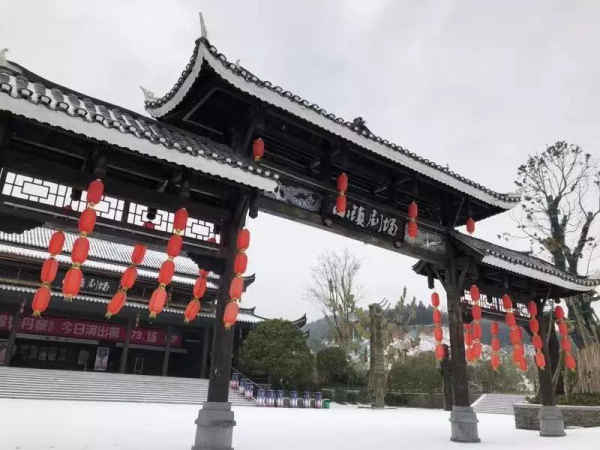 淺淺的積雪輕輕蓋在翹角飛檐上,