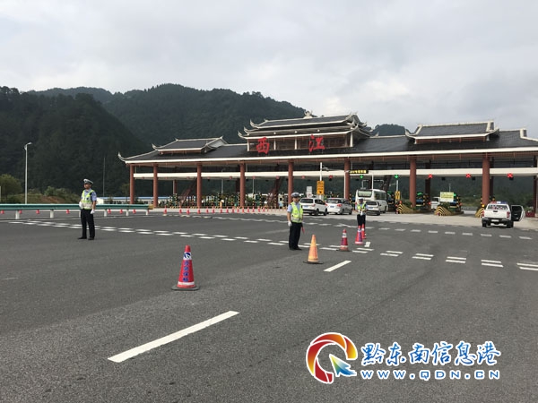 7月18日上午8時,黔東南州交警支隊高速一大隊三中隊組織警力聯合雷山縣交警大隊西江中隊,在凱雷高速西江收費站,對進出站車輛進行檢查,特別是營運車輛更是做到逢車必查。針對營運車輛的檢查,現場民警分為兩組,一組對客車的實載人數、安全帶使用情況、客車安全設施等進行常規檢查,另一組民警則對營運車輛駕駛員進行酒精測試。