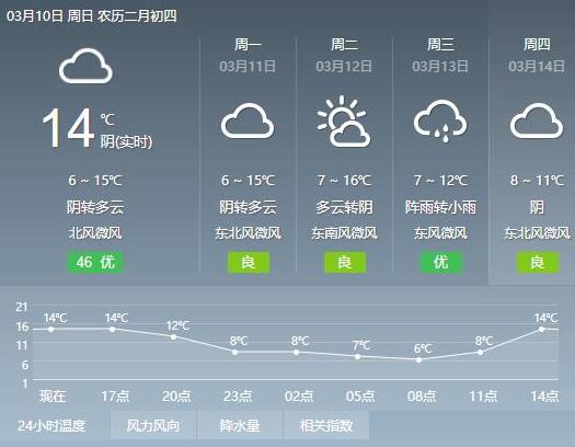 本周我省有兩次降雨天氣過程,分別出現在周三和周六;大部地區氣溫起伏大,但最低氣溫均高于5℃,最高氣溫均在10℃以上。