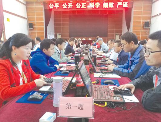 閱卷現場,212位老師正全神貫注地盯著各自桌上的筆記本電腦,手邊放著一個長方形的打分鼠標。閱卷現場鴉雀無聲,閱卷組長也認真地看著自己桌上的電腦,電腦上顯示著每位閱卷老師的閱卷情況,“情況”是用坐標表示。