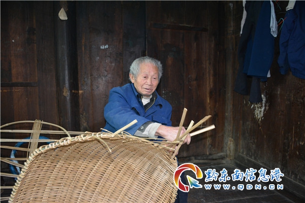 本網(wǎng)訊 2020年12月13日,筆者到雷山縣西江鎮(zhèn)腳堯采訪,看到該村年近九旬高齡的蔡紹奎老人在家里忙過不停地編制竹控箕“訂單”。他說,目前西江旅游景區(qū)的飯店、縣城學校及飯店等需要的大控箕,所以趕忙編制給他們。