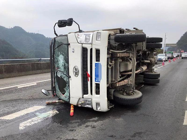 接警后,高速一大隊一中隊民警迅速趕往現場,民警到達現場后發現,一輛小型貨車側翻在道路中央,車廂內的貨物散落一地,嚴重阻礙到后方車輛的正常通行,加之發生事故的路段屬于一段長約9公里的長下坡危險路段,如果處置不及時,很有可能造成后方發生二次事故,后果不堪設想。