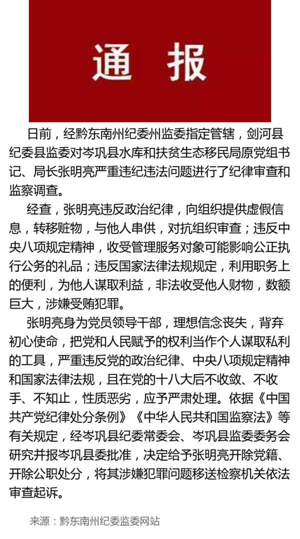 權威發布!黔東南州兩名官員,一人被判刑,一人被開除黨籍公職!