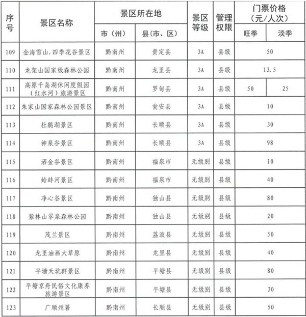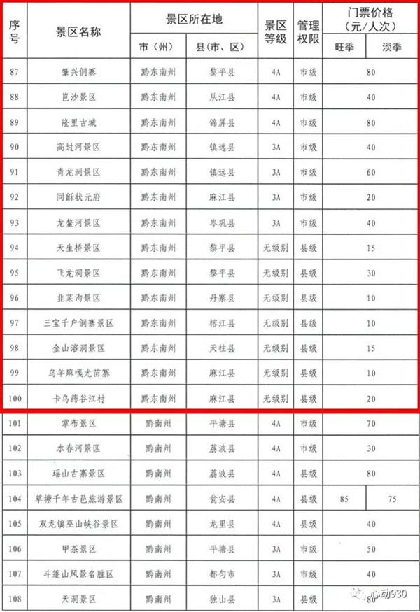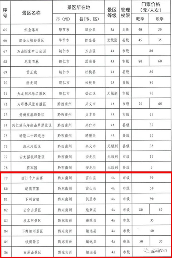 最新!黔東南州 22 個政府定價景區門票價格公布