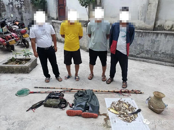 7月27日凌晨兩點,黔東南州黃平縣公安局上塘派出所接群眾報警稱:在轄區河道某處,有幾個人正在電魚。接警后,派出所值班民警迅速趕往事發地點,將正在河里非法電魚的孫某某、候某、吳某華、吳某付四人依法傳喚至派出所。