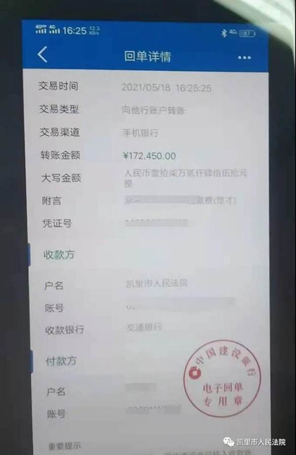 值得一提的是,5月18日下午,被送至拘留所李某某在法院強制措施的震懾之下,已經將案件款17萬元支付至法院,案件執行完畢。