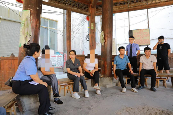 隨后,在鼓樓里,法官解曉莉和檢察官張萬英見到了其子吳某平、其女吳某連,并對其進行勸說,母親一個人從小含辛茹苦將姐弟二人撫養長大,十分不容易,過去的事都過去了,希望他們能夠一同前往村委會和母親平心靜氣的談一談,緩解雙方僵硬的關系。吳某平、吳某連均同意去村委會調解,見到母親了也會包容,不跟她爭吵。
