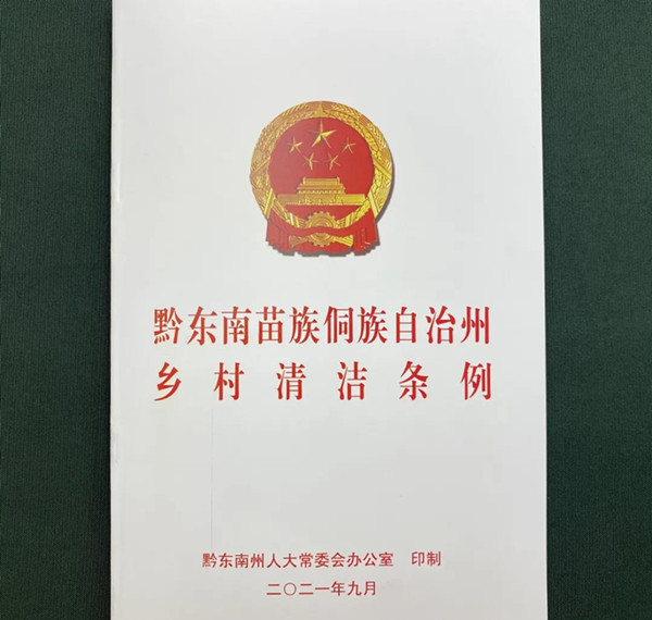 《黔東南苗族侗族自治州鄉村清潔條例》,于2021年4月28日經黔東南苗族侗族自治州第十四屆人民代表大會常務委員會第三十四次會議通過,2021年7月29日經貴州省第十三屆人民代表大會常務委員會第二十七次會議批準,自2021年10月1日起施行。