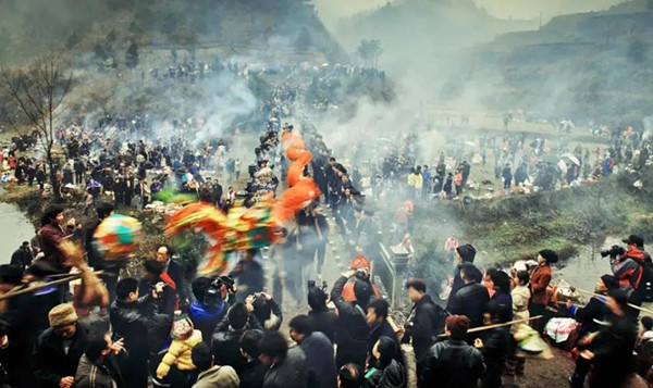 三穗寨頭村“二月二”民族文化藝術(shù)節(jié)活動(dòng)內(nèi)容有---“禳橋”、苗家婚俗、盤(pán)古歌、對(duì)情歌、吹木葉、苗家傳統(tǒng)工藝品展示等。這一天,當(dāng)?shù)孛缂胰罕娨漓胱嫦? 向外界公開(kāi)展示了他們神秘的民風(fēng)民俗和富有神韻的傳統(tǒng)民族文化。