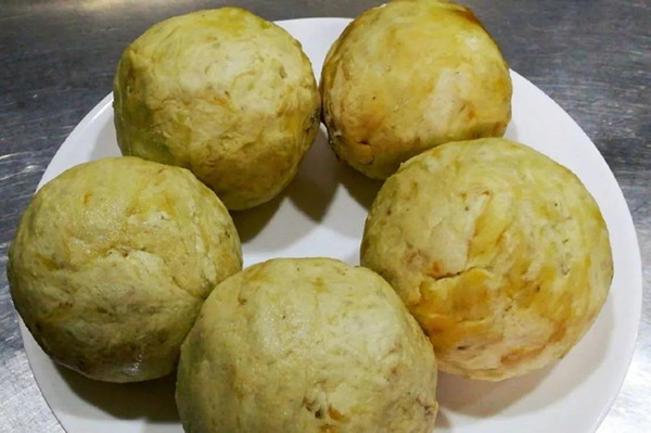 灰堿粑使用草木灰作輔助原料,并利用了草木灰的堿性作用,故取名為灰堿粑。灰堿粑微有堿性,擁有稻香味。吃法多種多樣,可以煮了加湯和作料,可以煮軟了涼拌,還可以像二塊粑一樣用來(lái)炒。