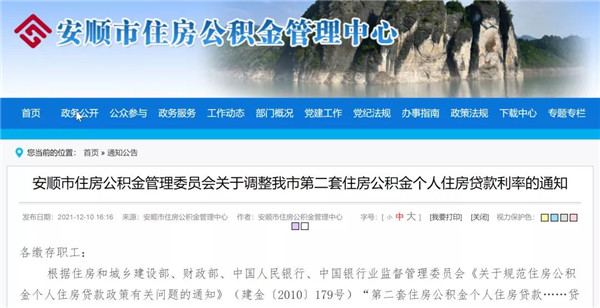 12月10日,安順市住房公積金管理中心發布安順市住房公積金管理委員會關于調整安順市第二套住房公積金個人住房貸款利率的通知。