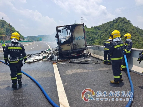 本網訊 7月6日中午12時40左右,在黔東南州S07凱里繞城高速插旗山大橋上有一貨車自燃起火。接到報警后,凱里市消防救援大隊消防救援人員迅速趕往現場。