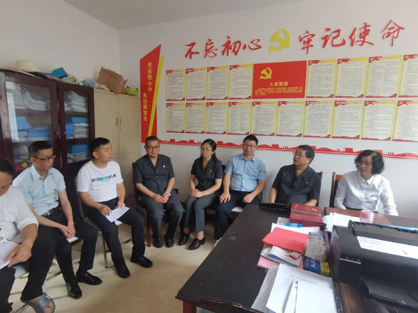 在高澤村委會,法官與鄉村干部坐在一起,了解村級基本情況并指導村級矛盾糾紛調處工作。