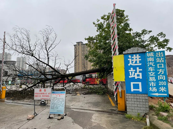 4月25日,凱里大隊凱棉路特勤站接到報警稱:凱里市城南客車站車輛入口處一棵大樹被刮倒,阻礙通行。凱里大隊凱棉路特勤站接警后立即出動趕赴現場處置。到達現場后發現,樹干直壓圍墻,導致圍墻起了裂縫,大門崗亭和監控設備也有些許受損,為避免不測情況發生,消防救援人員根據現場情況,將樹砍伐,第一時間排除隱患。