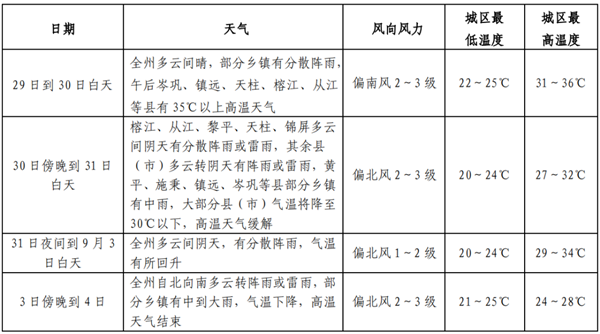1.本周29日到30日白天我州仍維持晴熱高溫天氣,戶外活動需注意防暑防曬,謹防中暑,同時注意森林、村寨和城鎮防火安全。