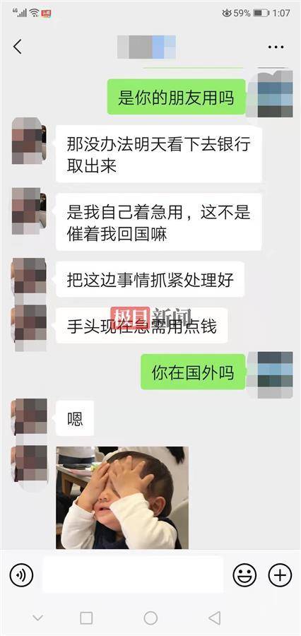張女士回復稱家里的錢存了定期,并詢問“是給你的朋友用嗎?”對方回復:“是我自己著急用,這不是催著我回國嘛,要把這邊的事情抓緊處理好。”