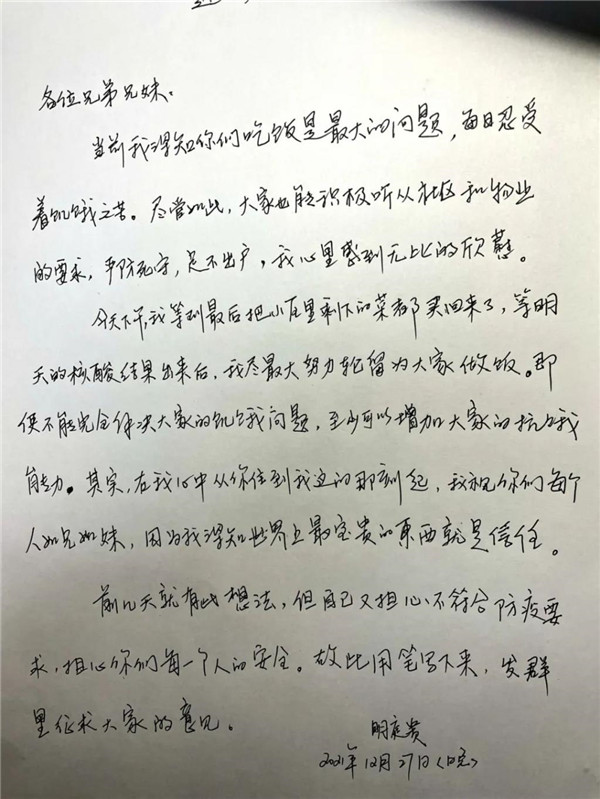 明庭貴堅(jiān)信,如果這件事?lián)Q成別人,在關(guān)鍵時(shí)刻,別人也會(huì)那么做。這次他下定決心,不管花多少錢,他都會(huì)給租戶們堅(jiān)持做飯直到小區(qū)解封,或者是等到他們能點(diǎn)到外賣的那一天。