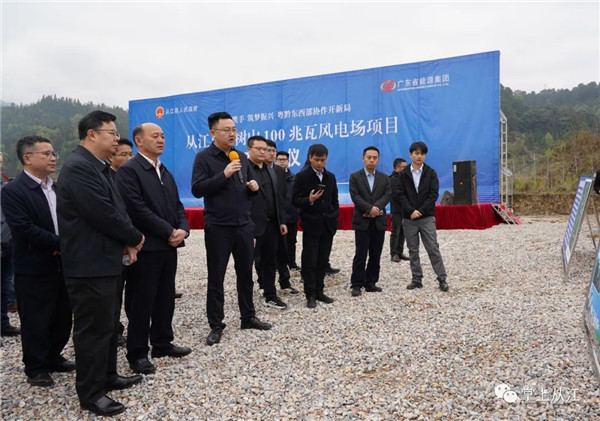 從江縣舉行歸樹山100兆瓦風電場項目開工儀式,縣政協主席孟榮林,縣區領導潘勇、黃紹毛、李建明出席。