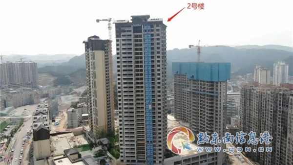 2# 內抹灰完成、門框完成、欄桿1-32層(半幅)、部分外墻底漆,裝飾裝修(貼磚30-32層)、電梯安裝中