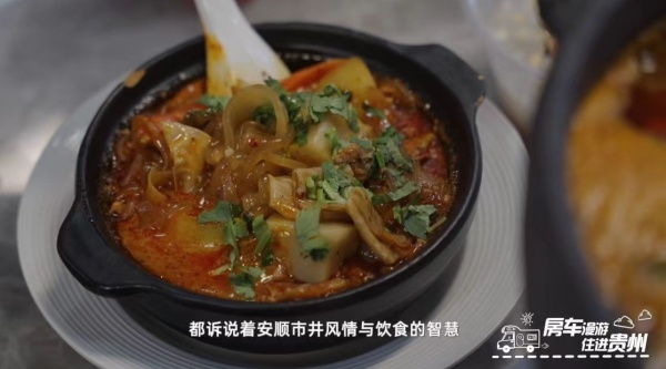 帶著滿身水汽與驚嘆,我們駛入安順的夜色深處。讀懂安順,最好的方式便是走入它的市井食肆。奪奪粉在砂鍋中咕嘟冒泡,米糕與肉末在酸辣湯底中翻滾;來一碗沖沖糕,糯米團沖入荸薺粉,拌上玫瑰糖、芝麻花生,香甜沁人;更不能錯過小鍋涼粉,安順特有的豌豆涼粉與豆皮、酸菜同煮,麻辣鮮香,一碗入肚,暖意頓生。