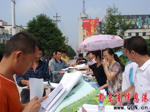 本港訊 (張維軍 周曉穎 攝影報道)6月25日上午,岑鞏縣團縣委、發改局、政法委、安監局等多家部門利用趕集天在縣政府廣場舉行節能減排、禁毒、安全生產等一系列宣傳活動,旨在讓全民積極行動起來,為節能減排、禁毒和安全生產打一場攻堅戰。活動當天,共發放宣傳資料6000余份。活動中,還積極引導廣大青少年增強資源意識和節約意識,并安排全縣號召廣大青少年開展“我為節約做貢獻”活動。