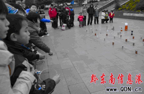 為豐富春節期間群眾文化生活,2月23日大年初一,岑鞏縣在縣政府廣場舉辦健身跳繩、套圈、筷子夾蛋、摸球、點炮、盲人敲鼓、猜字謎等系列游藝活動。(楊政權)