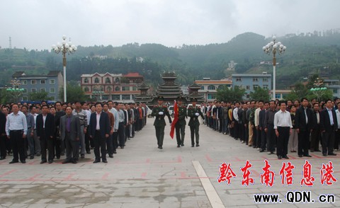 本港訊 (特約記者 潘光晨 攝影報道)10月1日上午8時,從江縣四大班子領(lǐng)導(dǎo)、縣直機(jī)關(guān)單位干部職工、駐從官兵、省州駐從單位干部職工等近1000人,在從江縣行政中心廣場舉行莊嚴(yán)的升國旗儀式,熱烈慶祝中華人民共和國成立61周年。共同祝福祖國的明天美好。
