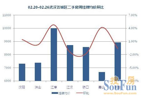 本周武漢七個(gè)主城區(qū)中有四個(gè)主城區(qū)掛牌均價(jià)有小幅上漲,只有三個(gè)主城區(qū)掛牌均價(jià)出現(xiàn)小幅下跌。