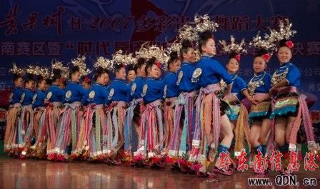在“多彩貴州”舞蹈大賽黔東南賽區(qū)決賽比賽中,來(lái)自丹寨縣一支民間表演隊(duì)參賽的苗族錦雞舞,以最高分奪得賽區(qū)原生態(tài)舞蹈比賽第一名。苗族錦雞舞源遠(yuǎn)流長(zhǎng),是苗族蘆笙舞中別具一格的一種民間傳統(tǒng)舞蹈,主要流行于貴州省黔東南州丹寨縣民間。錦雞舞表演陣容宏大,是當(dāng)?shù)厝罕娮钕矏?ài)的一種苗族舞蹈。