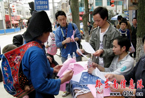 本港訊 (特約記者 黃曉海 攝影報(bào)道)自進(jìn)入森林防火重點(diǎn)期以來(lái),貴州省持續(xù)干旱,防火形勢(shì)嚴(yán)峻。2010年3月1日,貴州省丹寨縣林業(yè)局的森林消防隊(duì)員利用趕集日走上街頭宣傳森林防火知識(shí),向前來(lái)趕集的各族群眾發(fā)放森林防火宣傳資料,提高群眾森林防火意識(shí)。