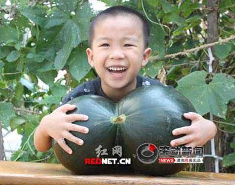 我好奇地把這個西瓜買回家,招來了鄰居的小朋友們,他們抱著西瓜愛不釋手。