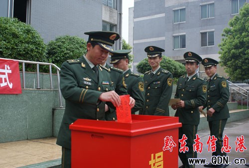 本港訊 (宋峰)4月20日,為支持災后重建工作,幫助災區人民渡過難關,武警黔東南支隊開展向玉樹災區人民捐助活動。