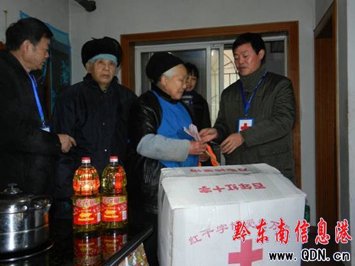 春節將至,歲寒情深。為使 “四幫四促”聯系點的困難群眾和幫扶的已改制破產企業特困職工能過上一個溫暖祥和的佳節,1月17-18日,州衛生局黨組書記金鳴昌,州紅十字會常務副會長李潤英、副會長兼秘書長晏志一行在分別到三穗縣八弓鎮、良上鄉和凱里市開展博愛送萬家暨春節送溫暖活動。