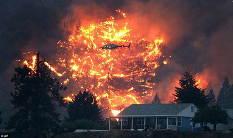 中國日報網環球在線消息:據英國《每日郵報》8月6日報道 自從加拿大西部不列顛哥倫比亞省7月爆發森林大火以來已經過去20天了,但火勢仍無減弱的跡象,就連被派去救火的直升機飛行員也已無計可施,只好“坐視”大火繼續蔓延。