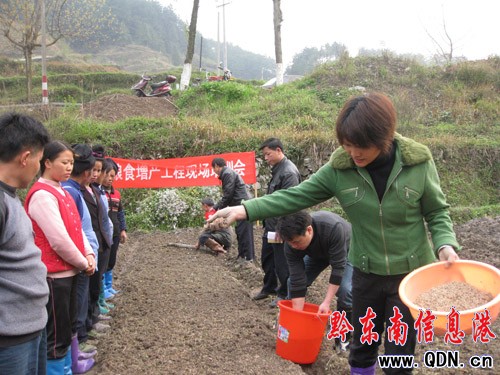 劍河縣農業和扶貧開發局為把先進適用的農業技術與農業生產相結合,拓展先進農業生產技術推廣應用,4月13日上午在革東鎮麻栗村召開了2011年糧食增產工程現場培訓會。這是該縣糧食增產工程采取的主要措施之一。