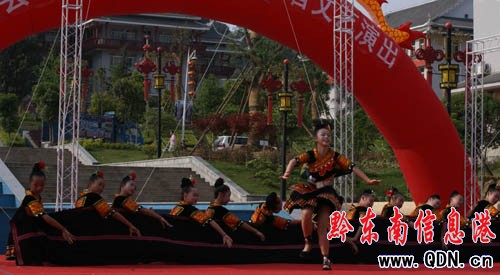 孩子們正在為環衛工人們表演舞蹈《苗布娃》