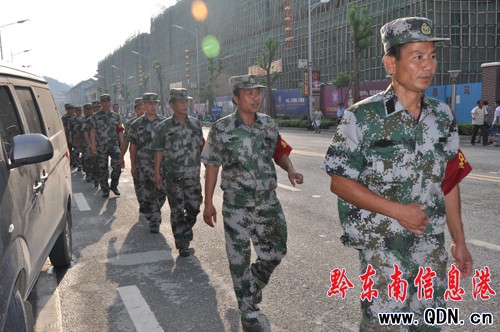7月5日至7日,為確保2011貴州•劍河仰阿莎文化節圓滿完成,該縣抽調交警、消防、武警、民警、聯防等各警種560人密切配合,共同維護現場治安秩序、交通秩序和應對各種突發事件,確保活動順利開展。圖為聯防人員巡邏情景。(石慶偉)