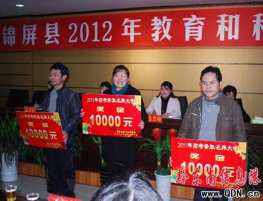 2月24日上午,錦屏縣在縣教育和科技局六樓會議室隆重召開2012年教育和科技工作大會,用102.9萬元對在2011年教育教學工作中取得突出成績的學校、教師和學生進行重獎。