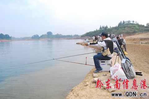 昨日上午,來自全省各地的42支隊伍共168名釣魚高手帶著漁具、干糧來到了舞陽湖參賽。9點30分,各個選手裝好了魚竿、上好魚餌后,比賽正式開始。僅比賽了一分鐘,貴州省競技釣俱樂部的野釣高手朱曉黔釣到了本次比賽的首條魚,該魚為舞陽湖盛產的鯉魚,重約半斤。當日比賽到18點告一段落,各個隊伍收獲頗豐,釣得最多的貴陽平友俱樂部代表隊已釣得12斤魚。