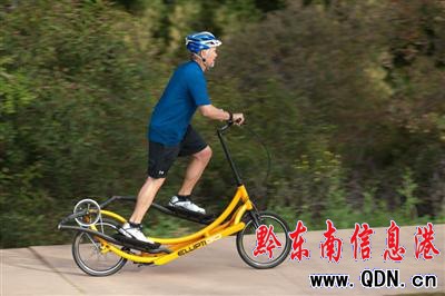 ElliptiGO公司的新款自行車倒是一改傳統自行車坐著騎的姿勢,弄成了像是跑步機那樣跑著“騎”!膀T車”變成了“長跑”,跟騎車一樣不怎么費力,屁股也不疼了,還能享受飄浮在半空中奔跑的神奇感覺,多好。