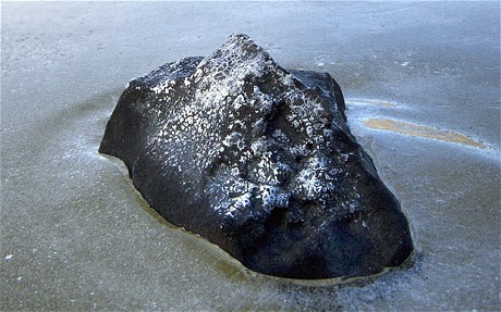 這是2008年11月28日在加拿大的一個(gè)池塘內(nèi)發(fā)現(xiàn)的一塊隕石碎片