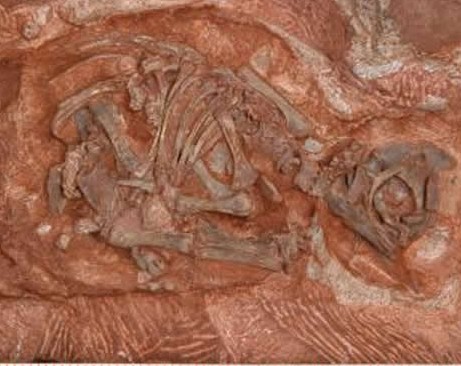 來自多倫多大學(xué)密西沙加學(xué)院的古生物學(xué)家Robert Reisz、皇家安大略博物館的David Evans及其同伴在南非發(fā)現(xiàn)了1.9億年前的原蜥腳龍—巨椎龍(Massospondylus)的巢穴化石。巢穴中存在許多已形成胚胎的恐龍蛋化石,旁邊還有許多微小的恐龍腳印遺跡,這表明恐龍幼仔至少要在巢穴內(nèi)長到兩倍大小后才會離開巢穴。這一發(fā)現(xiàn)對于揭示早期恐龍復(fù)雜的繁殖行為進(jìn)化過程有重要的意義。在這之前已發(fā)現(xiàn)最早的恐龍巢穴是1億年前。
