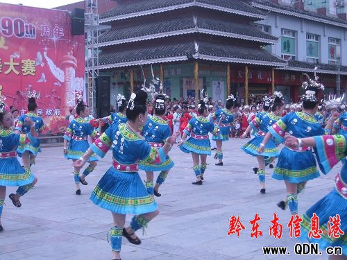 “為紀念中國共產黨成立90周年,我們在這里隆重舉行紀念中國共產黨成立90周年中老年廣場民族歌舞大賽暨民族歌舞展演活動,標志著我市慶祝建黨90周年系列活動正式拉開了帷幕。”凱里市副市長吳琳平說,舉辦此次展演活動的目的,旨在深切緬懷中國共產黨的豐功偉績,謳歌中國共產黨人的奮斗精神,表達全市廣大黨員、干部和群眾愛黨、愛國的真摯情感,展示凱里市中老年朋友積極向上的精神風貌。