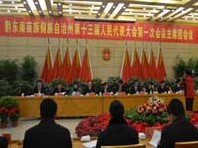 2月9日下午,州十三屆人大一次會議主席團舉行第一次會議。州人大常委會主任羅亮權主持會議。會議推選廖少華、李飛躍、羅亮權、楊華昌、張文強、王貴、石干昌、莫章海、潘玉鳳、唐斌、楊俊、楊秀錫、吳錫鋒為州十三屆人大一次會議主席團常務主席。會議表決通過了州十三屆人大一次會議各次全體會議執行主席分組名單、大會副秘書長名單、大會計劃財政審查委員會人員名單、州十三屆人大一次會議日程和代表提交議案的截止時間,審議通過了本次代表大會的選舉辦法(草案)、審議通過了州十三屆人大各專門委員會設立及其組成人員產生辦法(草案)。