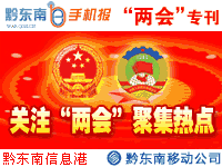本報攜手黔東南移動、黔東南信息港預(yù)祝黔東南州“兩會”取得圓滿成功!本刊在“兩會”期間免費發(fā)送,如需定制《黔東南手機(jī)報》請編輯短信“0855”發(fā)送到10658255,3元/月。