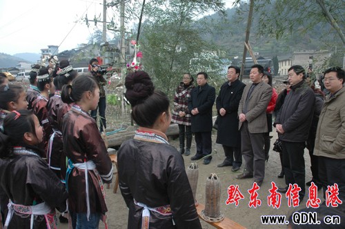 遵義市委宣傳部調研組正在巖洞村體驗侗族風情。
