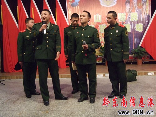 為了豐富多彩新春佳節(jié)文化活動,提高公安干警的精神食糧,1月27日,雷山縣公安局組織公安系統(tǒng)舉行迎新春聯(lián)歡文娛晚會,來自縣公安局全體民警、丹江派出所、武警中隊(duì)官兵、消防大隊(duì)官兵、森林公安分局、縣移動公司、保護(hù)區(qū)公安派出所和2009年黔東南州公安機(jī)關(guān)十佳警嫂潘慧、縣文體廣播電視局藝術(shù)團(tuán)副團(tuán)長梁芳等單位和個人參加了演出,共18個節(jié)目。(張希才 申后香 攝影報道)