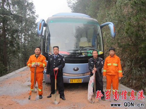 2月27日上午,全國愛民模范、西江派出所教導員楊啟明帶領民警,冒著雪凝危險上路巡邏和開展為民服務活動,在轄區營上村雪凝最嚴重路段,成功救助30多名旅客脫離險情,將旅游大巴車成功拖出危險境地,避免了一場重大交通事故的發生。景區民警熱情服務、不怕危險的精神被游客和當地干部群眾廣為傳誦。(李明和 張希才 攝)