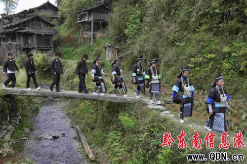 本港訊 (陳沛亮 攝影報道)2010年4月16日,農歷三月三,榕江縣兩汪鄉空申村短裙苗族同胞迎來一年一度的“茅人節”。在節日期間,不分是否結婚的男女們收拾打扮,相互邀請,爬到寨子的茅人玻,插上茅人,與自己朝思暮想的情人幽會、唱情歌、談情說愛等。“茅人節”在當地已經有幾百年歷史,是兩汪鄉短裙苗族獨有的“情人節”。