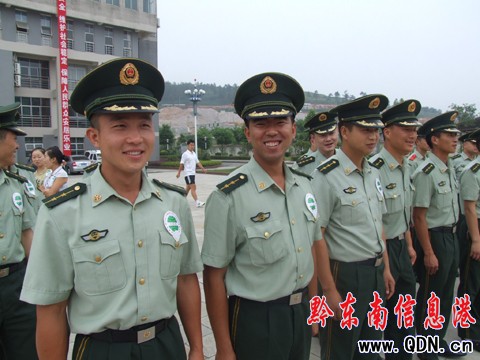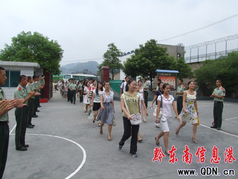 武警官兵列隊熱烈歡迎女青年的到來